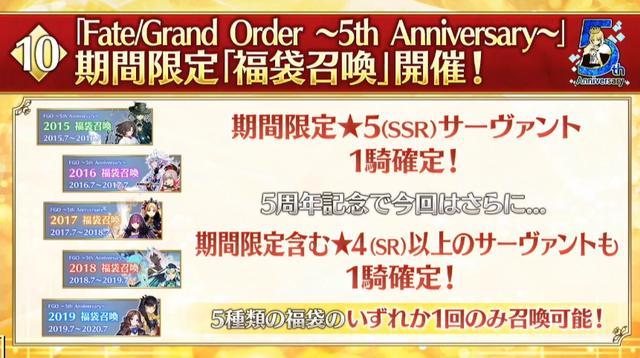 Fate Go News Jp Fgo 5th Anniversary There Are 5 Available Banners Featuring Limited Servants Based On Year Of Release The Pool Is As Follows 5 Servants Are All Limited